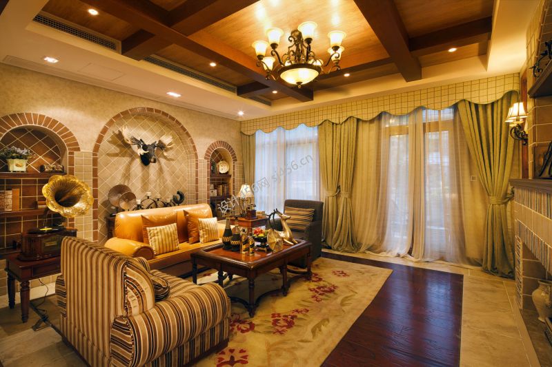 美林湖国际社区田园美式317平米别墅装修案例风效果图