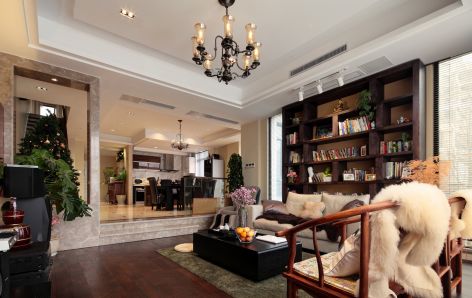 招商雍景湾新中式风格194平米别墅装修案例风效果图