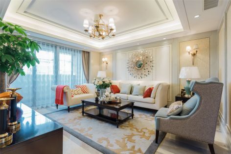 保利小楼大院美式风格140平米四室两厅装修案例风效果图