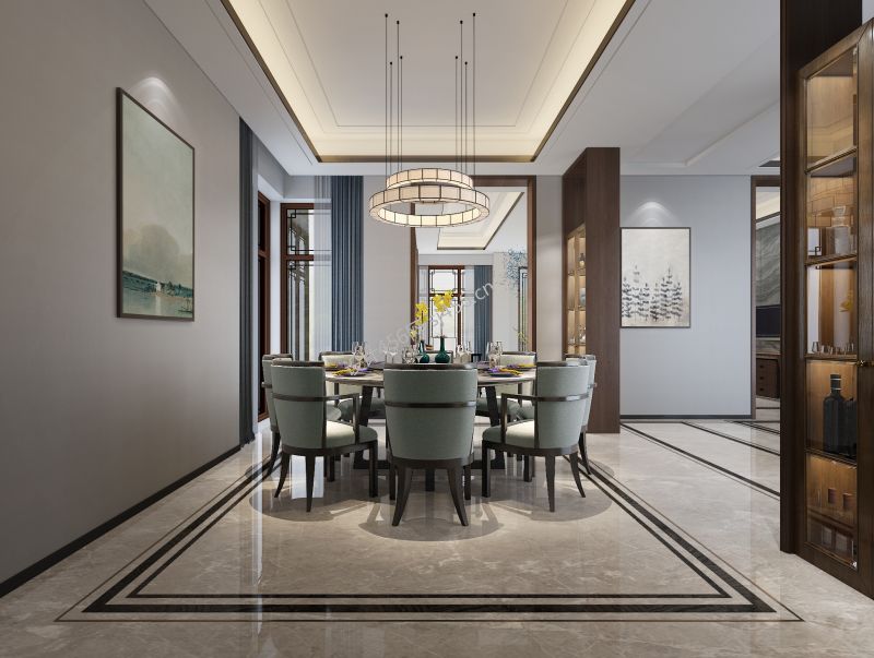 金地天河公馆现代中式203平米别墅装修案例风效果图