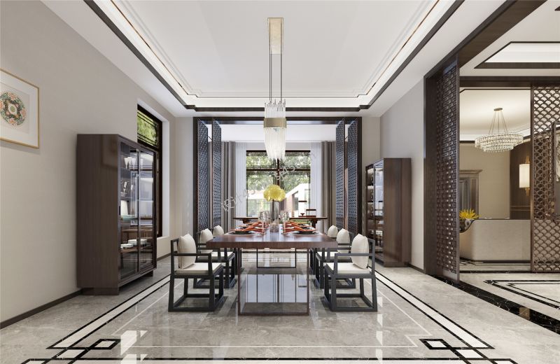 金地天河公馆现代中式203平米别墅装修案例风效果图