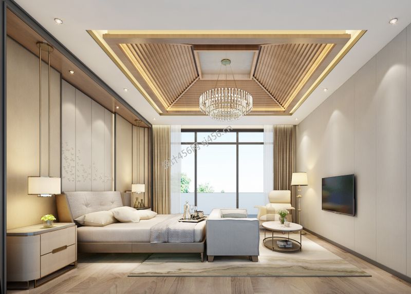 现代中式203平米别墅卧室装修效果图