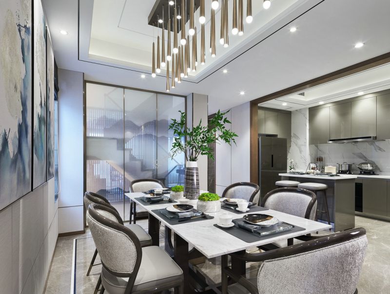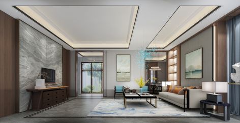 金地天河公馆现代中式203平米别墅装修案例风效果图