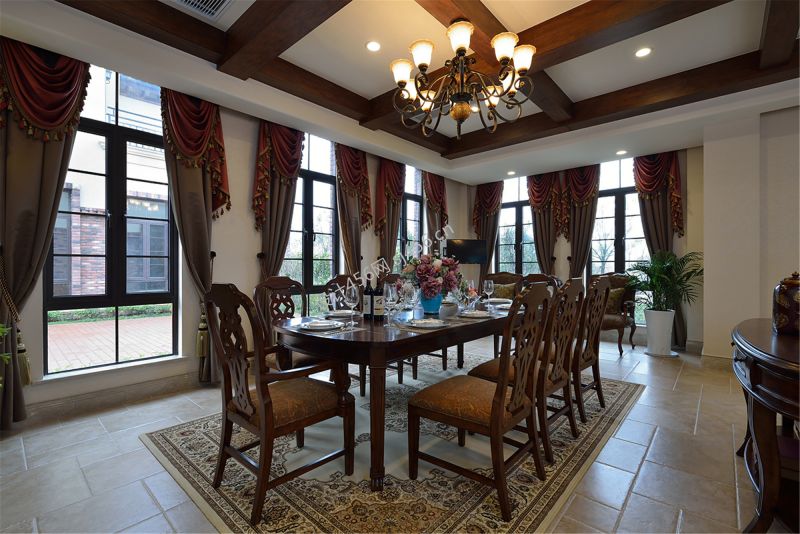 五矿万樾台古典美式216平米别墅装修案例风效果图