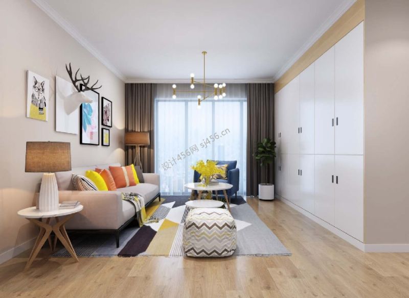 110㎡现代北欧风格三居室客厅装饰装修案例