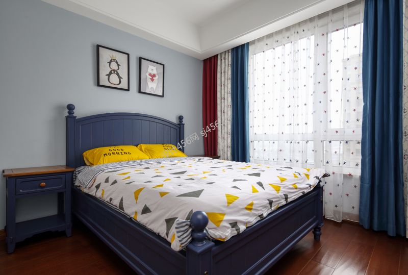 美式风格140平米四室两厅卧室窗帘装修效果图