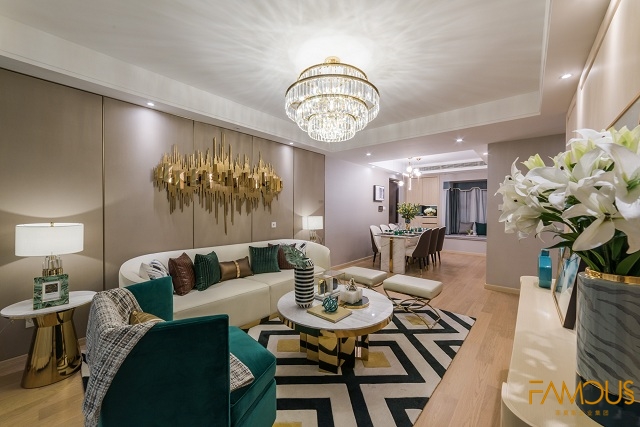 珊瑚湾畔107㎡三居室现代轻奢装修案例