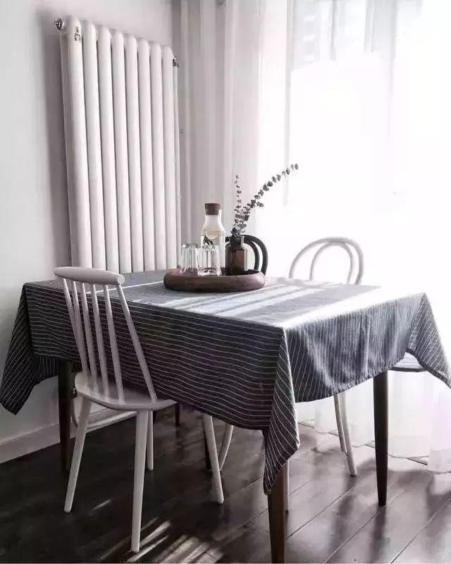 如果不想把整张餐桌遮住,可以试试桌旗。桌旗一般铺在桌子的中线或者对角线上,还可以搭配餐垫使用,桌旗可以起到很好的装饰作用,让餐厅看起来更有情调。