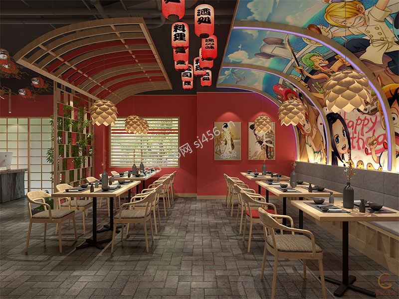 350㎡日式风格日料店餐厅桌椅装修效果图