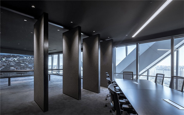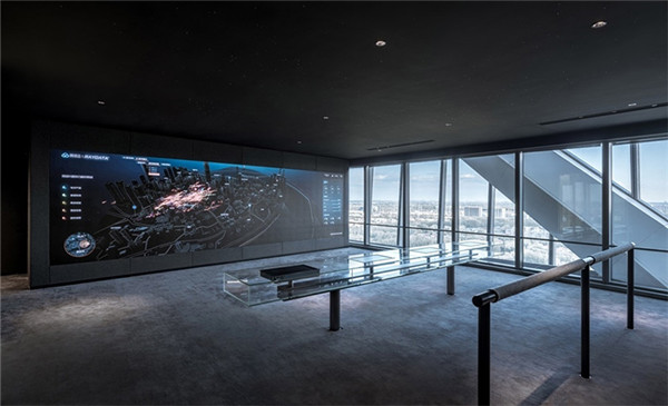 白色的豆荚椅被点缀在各处。办公室的南侧可通过一条明亮的白色人行道进入,该房间较暗,以戏剧化的表现屏幕和现场互动模型的外观。此外,还安装了LED灯带照明,以营造“人工智能时代办公室的独特氛围”。
