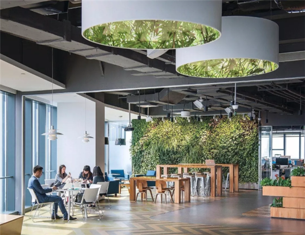 相对于传统单调的墙面设计,现在的办公室更向往大自然元素的应用。绿植能够缓解视觉疲劳,带来的清新自然的同时,给人以活力和生机。