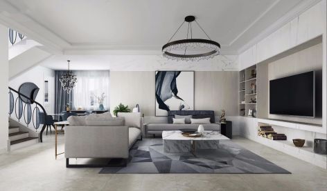 招商雍景湾时尚简约风217平米别墅装修案例风效果图