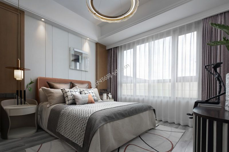 轻奢风格140平米四室两厅卧室窗帘装修效果图