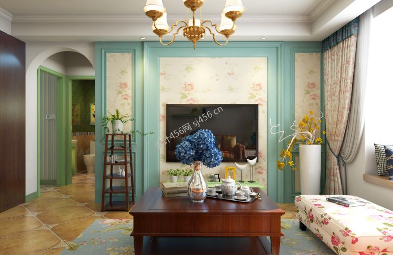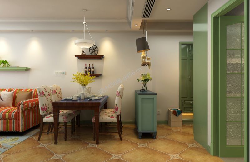 越秀明珠天悦江湾田园风格93平米三室两厅装修案例风效果图
