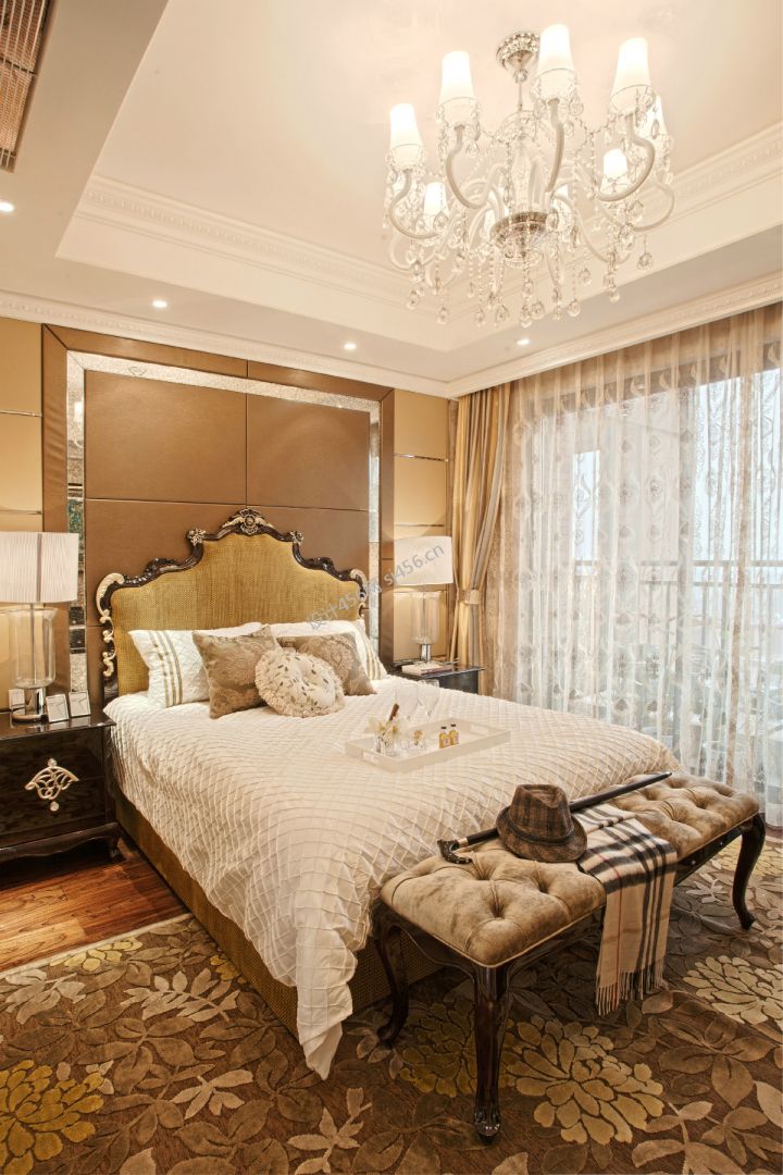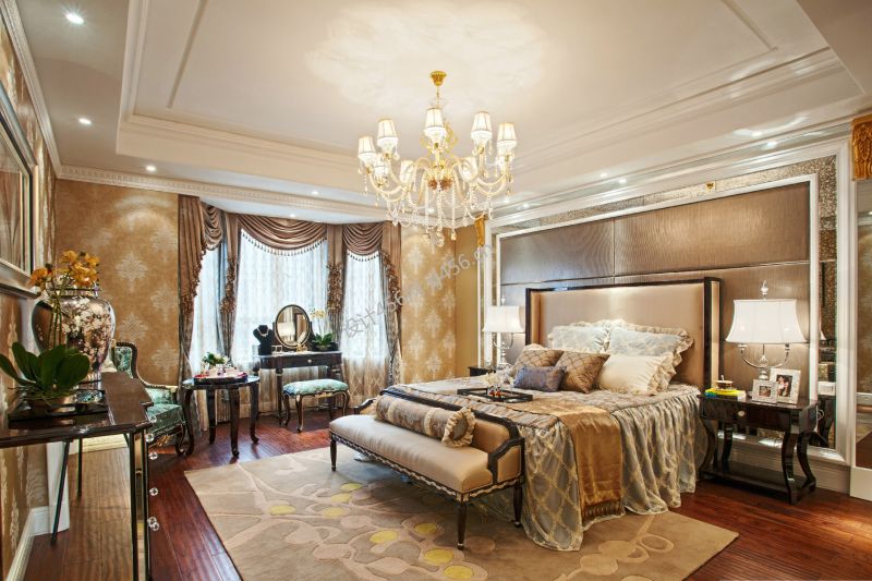 奢华欧式142平米四室两厅卧室吊灯装修效果图