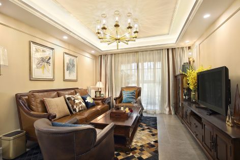 广州美懿装饰 江源半岛美式风格127平米三室两厅装修案例