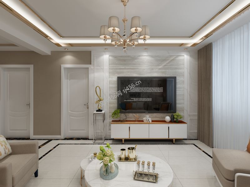 祥隆万象城轻奢风格95平米二居室装修效果图案例风效果图