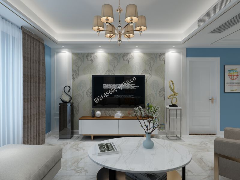 逸城山色北欧风格125平米三居装修设计案例风效果图