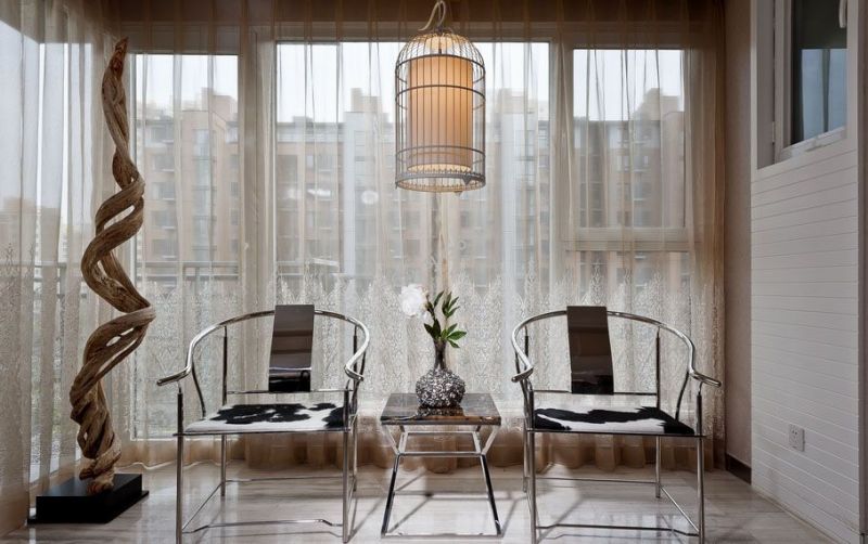 2020新古典风格装修图片 阳台窗帘装修效果图