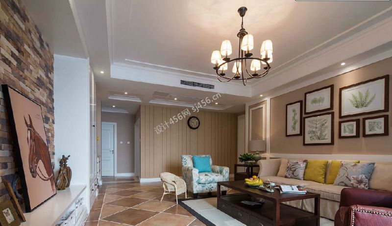 福星城107平米三居美式客厅吊顶装修设计效果图