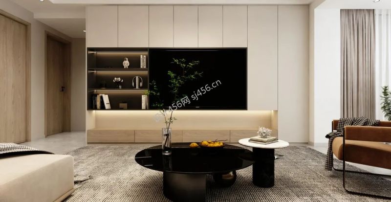 恒大翡翠华庭140平米极简三居室装修案例风效果图