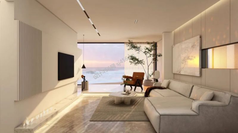 恒大翡翠华庭140平米极简三居室装修案例风效果图