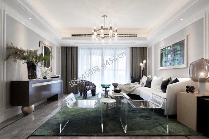 江水平装饰 金色蓝镇现代简约风格108平案例