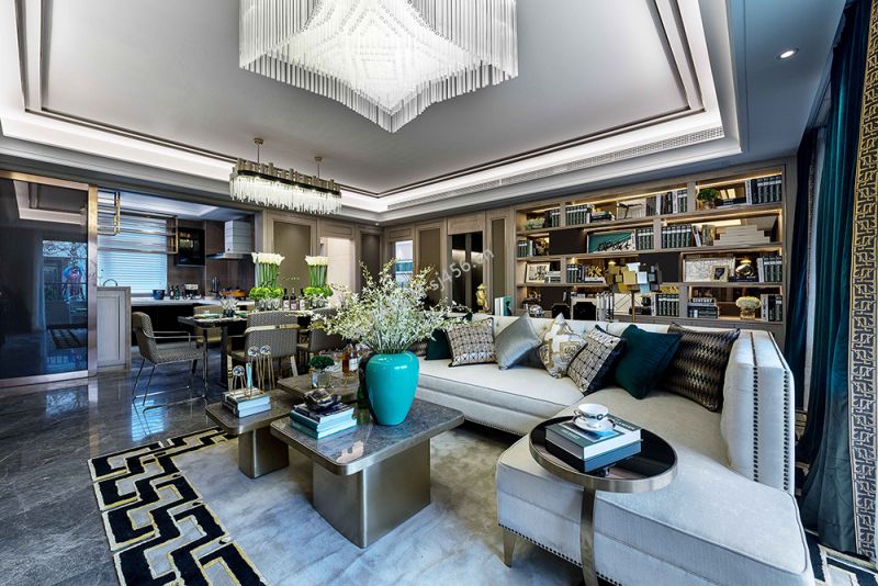 四居133方现代风格客厅吊顶设计图欣赏