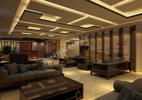 中式会所设计装修效果图片 2020会所吊顶装修效果图
