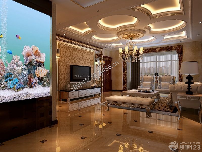 哈尔滨实创装饰打造海富金棕榈130平舒适大气简欧两居风效果图