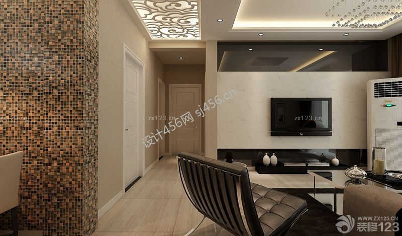 哈尔滨实创装饰打造翠湖天地117平雅致沉稳现代两居风效果图