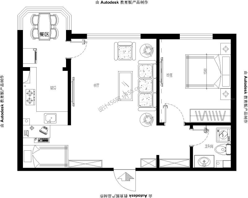 哈尔滨善上居18号楼D1-D2-02户型93平二居室欧式混搭设计方案风效果图