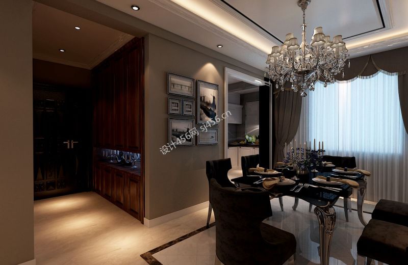 哈尔滨善上居18号楼D1-D2-02户型93平二居室欧式混搭设计方案风效果图