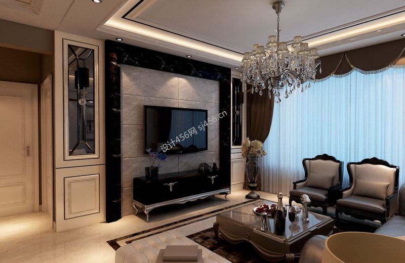 哈尔滨实创装饰11.9万装修巴黎第五区120平欧式风格三居室奢华美居风效果图