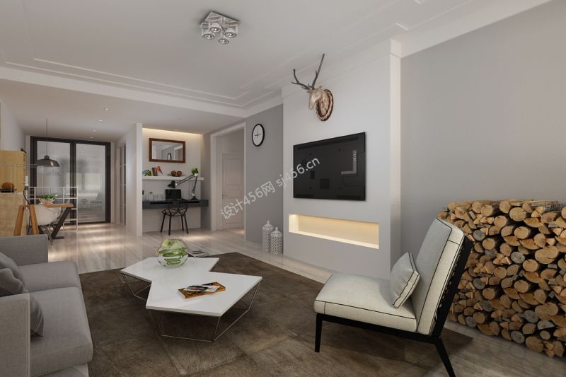 2020现代极简风格装修图片 2020客厅电脑桌设计效果图