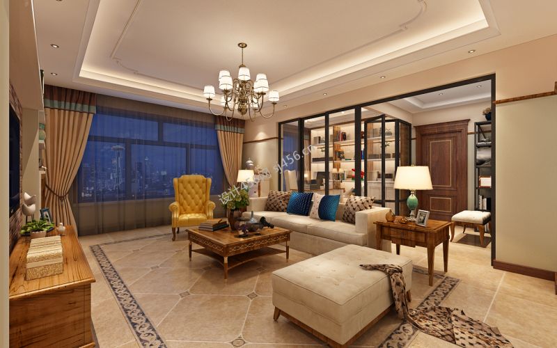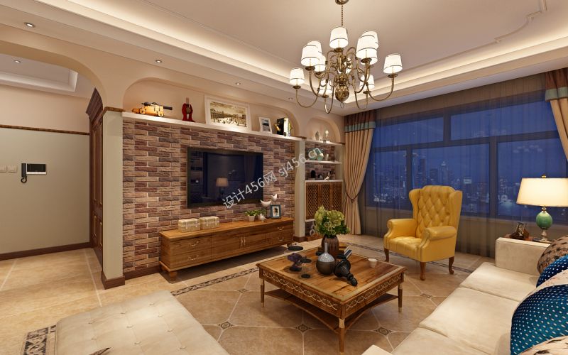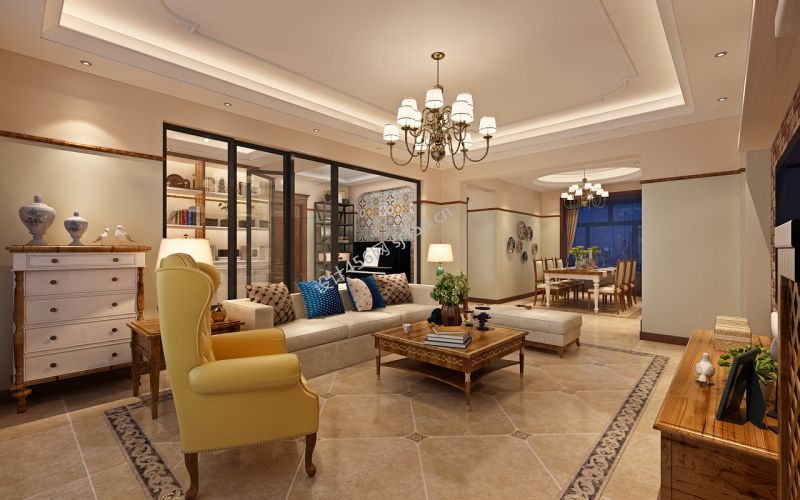 2020美式乡村风格家装效果图 2020客厅地板砖造型效果图