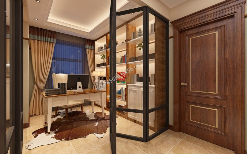 美式风格书房效果图 2020书房玻璃折叠门图片