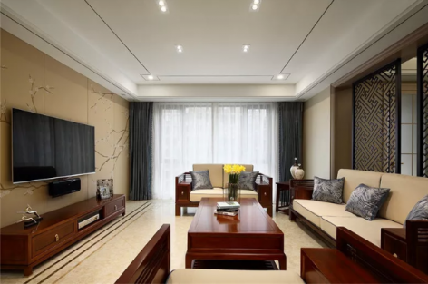 二居95平新中式风格客厅设计图欣赏