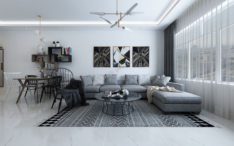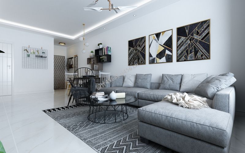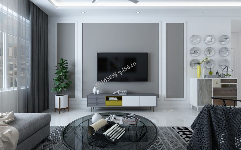 现代风格121平米二居客厅灰色电视墙装修效果图