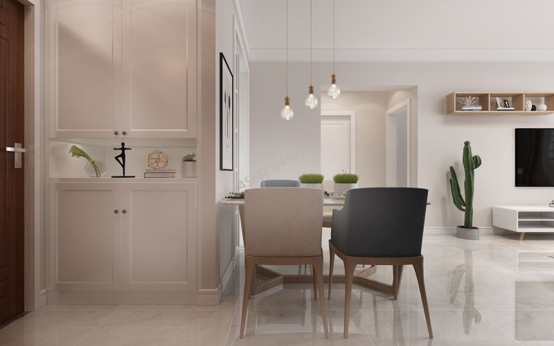 现代北欧风格57平两居餐厅背景墙设计效果图