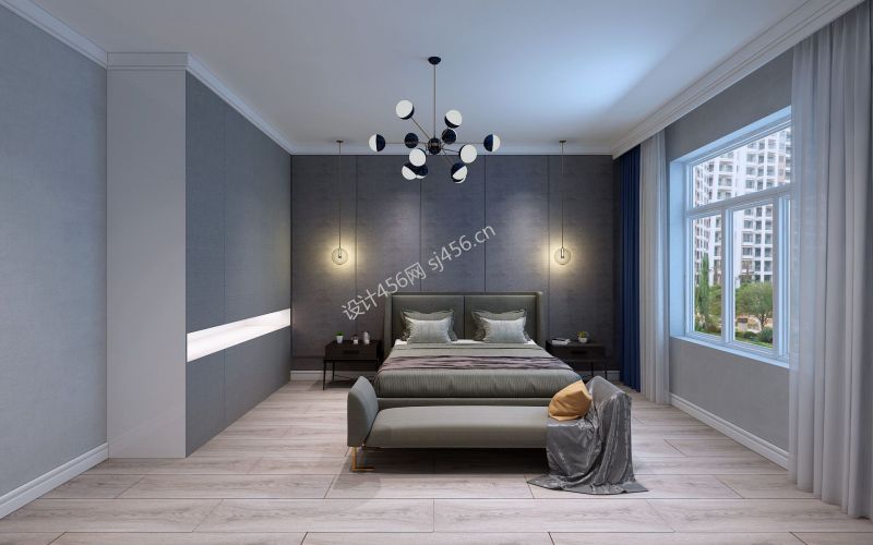 现代风格90平方米两居室卧室背景墙设计效果图