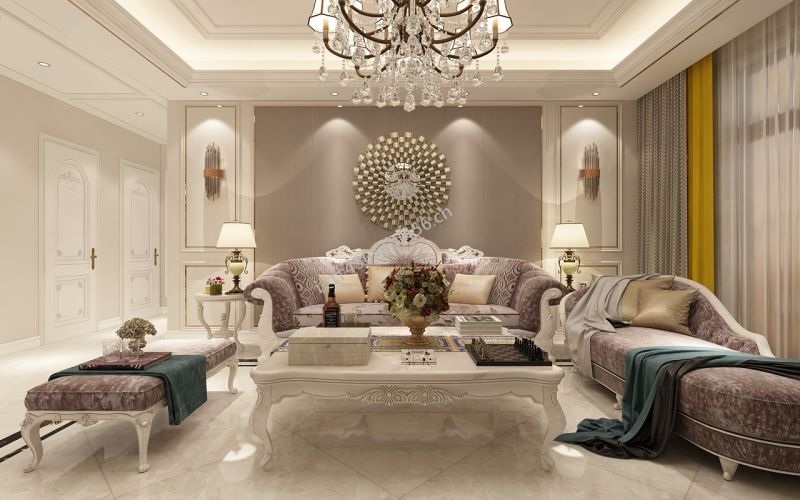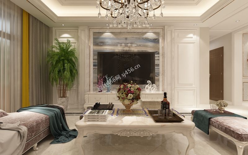 120平米简欧风格两居室客厅吊灯装潢效果图