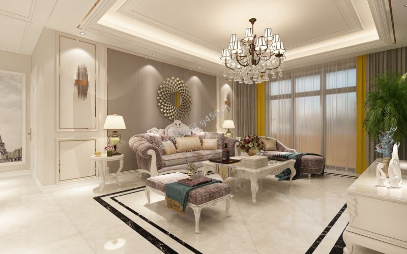 120平米简欧风格两居室客厅沙发背景墙装潢效果图