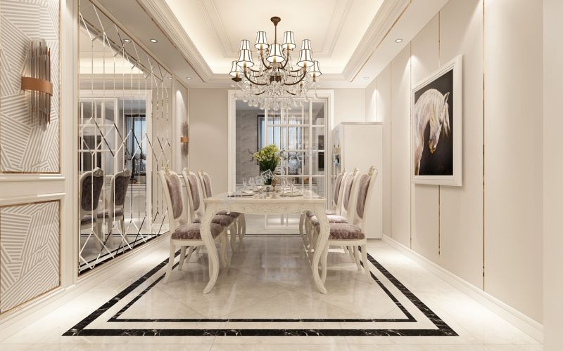 120平米简欧风格两居室餐厅吊灯装潢效果图