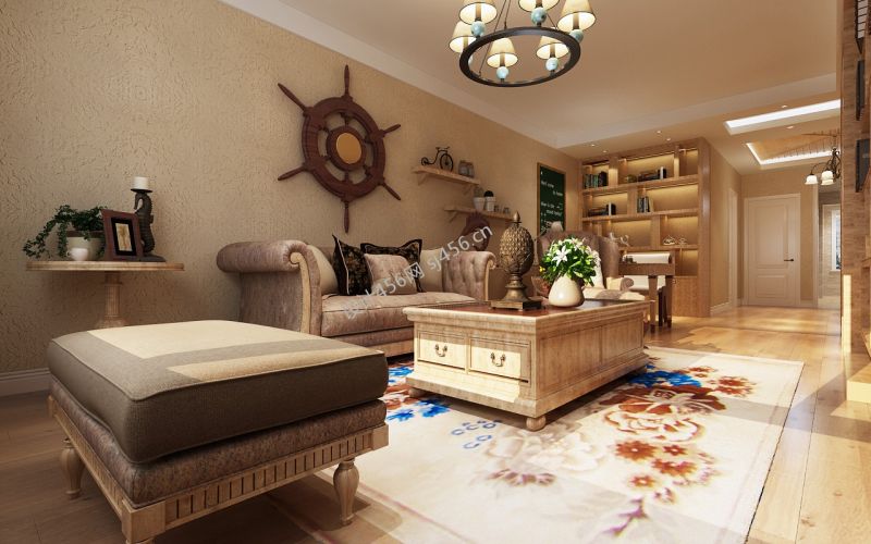 96平米简美式风格二居新房客厅吊灯装饰效果图