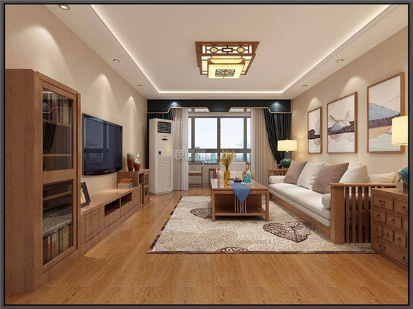 盛和世纪小区122平原木色新中式风格装修案例欣赏