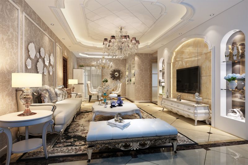 2020简欧式风格客厅效果图 大理石电视背景墙