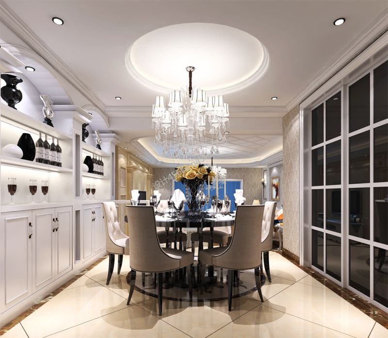 欧式别墅餐厅装修效果图 2020白色酒柜效果图