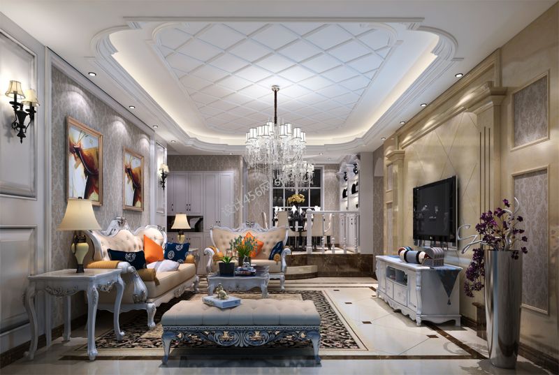 2020纯欧式别墅装修效果图 沙发背景墙装修效果图片