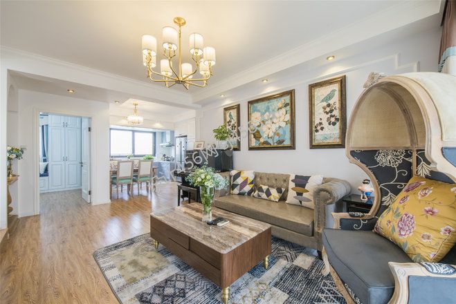2020简美家具搭配效果图 客厅沙发背景墙挂图